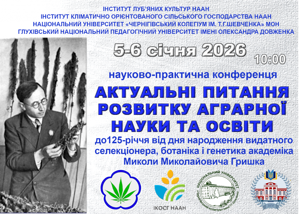 У рамках конференції буде проведено у змішаному форматі асоційований круглий стіл «Наукова спадщина М.М.Гришка — погляд крізь століття». Захід буде проведено у змішаному форматі. Дата проведення 05.01.2026 р., початок 10:00. Посилання на zoom-конференцію будуть автоматично надіслані під час реєстрації на конференцію.